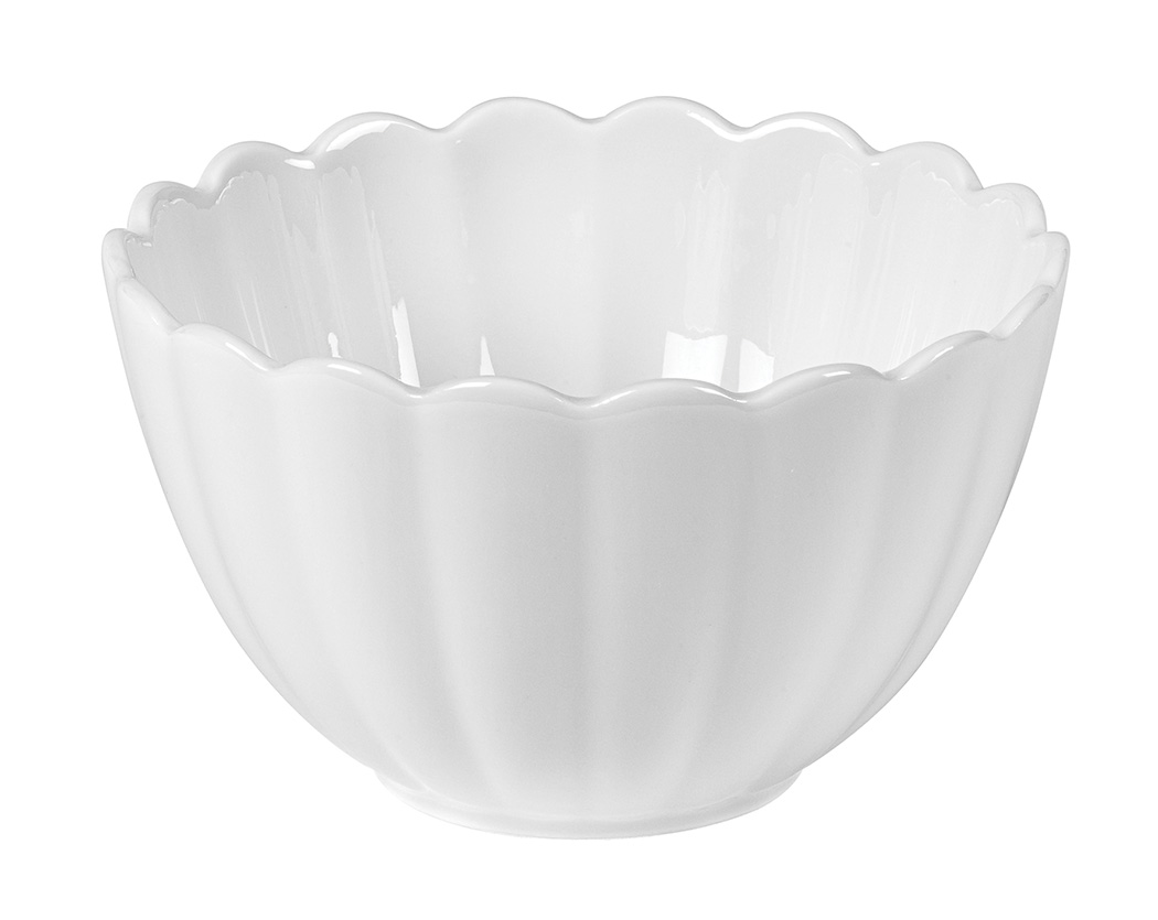 Stackable white hotel porcelain ramekins with contemporary lines and a ribbed body